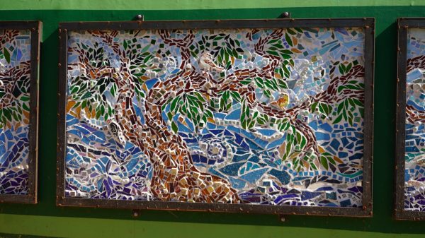 “First, I sketched out my design, then I went and started collecting materials, and got a lot of donations from family friends, local artists and Austin Creative Reuse, so it wasn’t too expensive to get all of the glass that I needed,” McKenna said. “I would then host work days where I would invite scouts and friends to come over to my house and work in my backyard, and we cut out tiles and lay them out, and then we made ceramic birds, which was cool because all of my friends picked a different bird, and it felt like they all got to leave their own mark on the piece.”