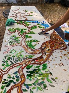 As it was a large-scale project, McKenna organized multiple workdays, collected donated materials and brought fellow scout friends to help with the many individual steps that go into creating a mosaic.