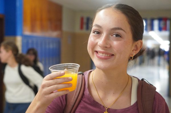 HELPING HANDS: Sophomore Paloma Ramon joined the Students of Color Alliance in the middle of last school year. SOCA handed out agua frescas to students passing in the hallway to spread awareness about the different cultures that should be celebrated throughout Hispanic Heritage Month.
