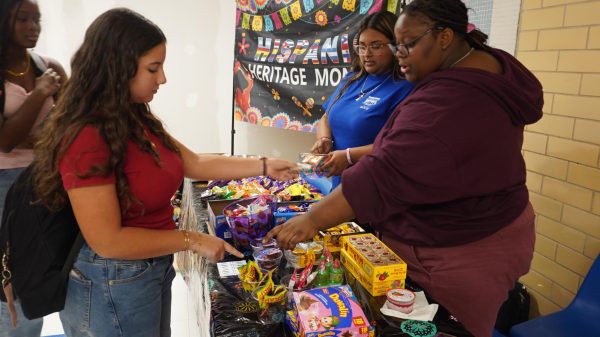 CONCHAS FOR A CAUSE: During the Student of Color Alliance Hispanic Heritage Month fundraiser last Thursday and Friday, sophomore Kalina Guerra supported the organization by purchasing traditional Hispanic candy from the club. Senior Kimora Hale, a member of the club, helped to sell the snacks.